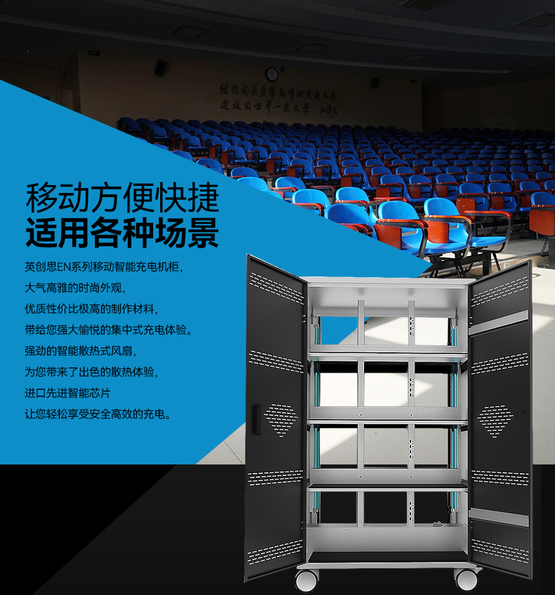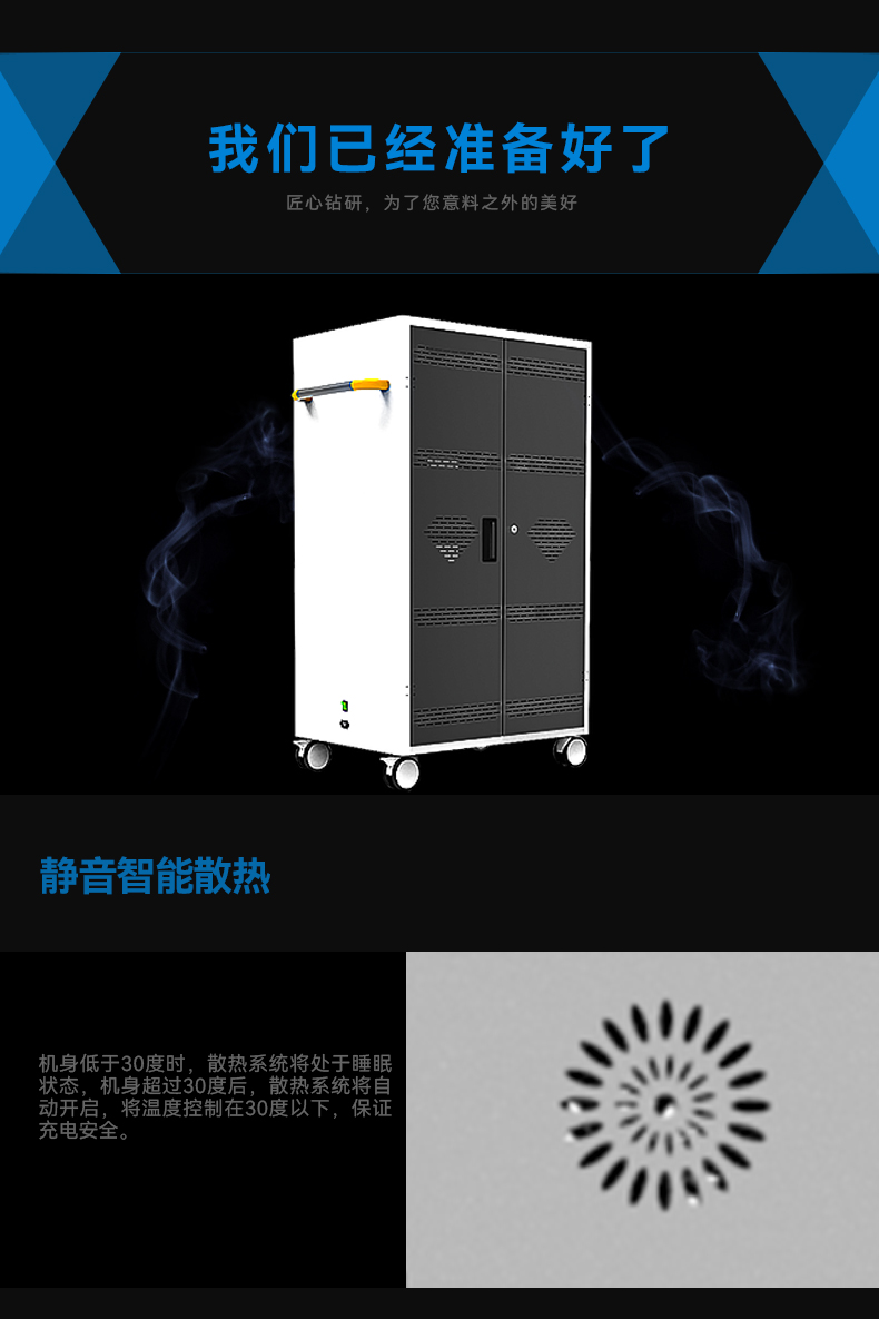 1.靜音設計:采用靜音硅膠萬向轉輪和無級變速散熱風扇,大大減小噪音產生